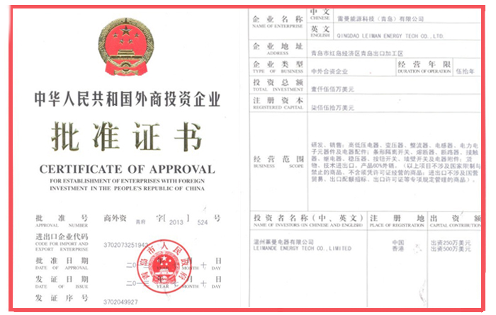 由溫州萊曼、香港萊曼投資興建的‘青島雷曼能源科技有限公司’注冊成功 !!